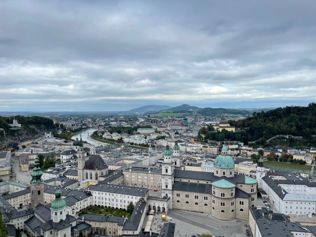 I took the train from Munich to Salzburg exceptionally quickly, and I highly recommend doing it this way if you are coming from Munich. It was a 90min train ride, with no transfers. I am not sure what I was expecting out of Salzburg. My exceptions were high; I do know that. I was picturing enchanted gardens with Julia Andrews singing on every corner with picture-perfect views everywhere you look. I have never seen the Sound of Music, but I have seen enough clips and photos to understand the plot and what it is supposed to look like.