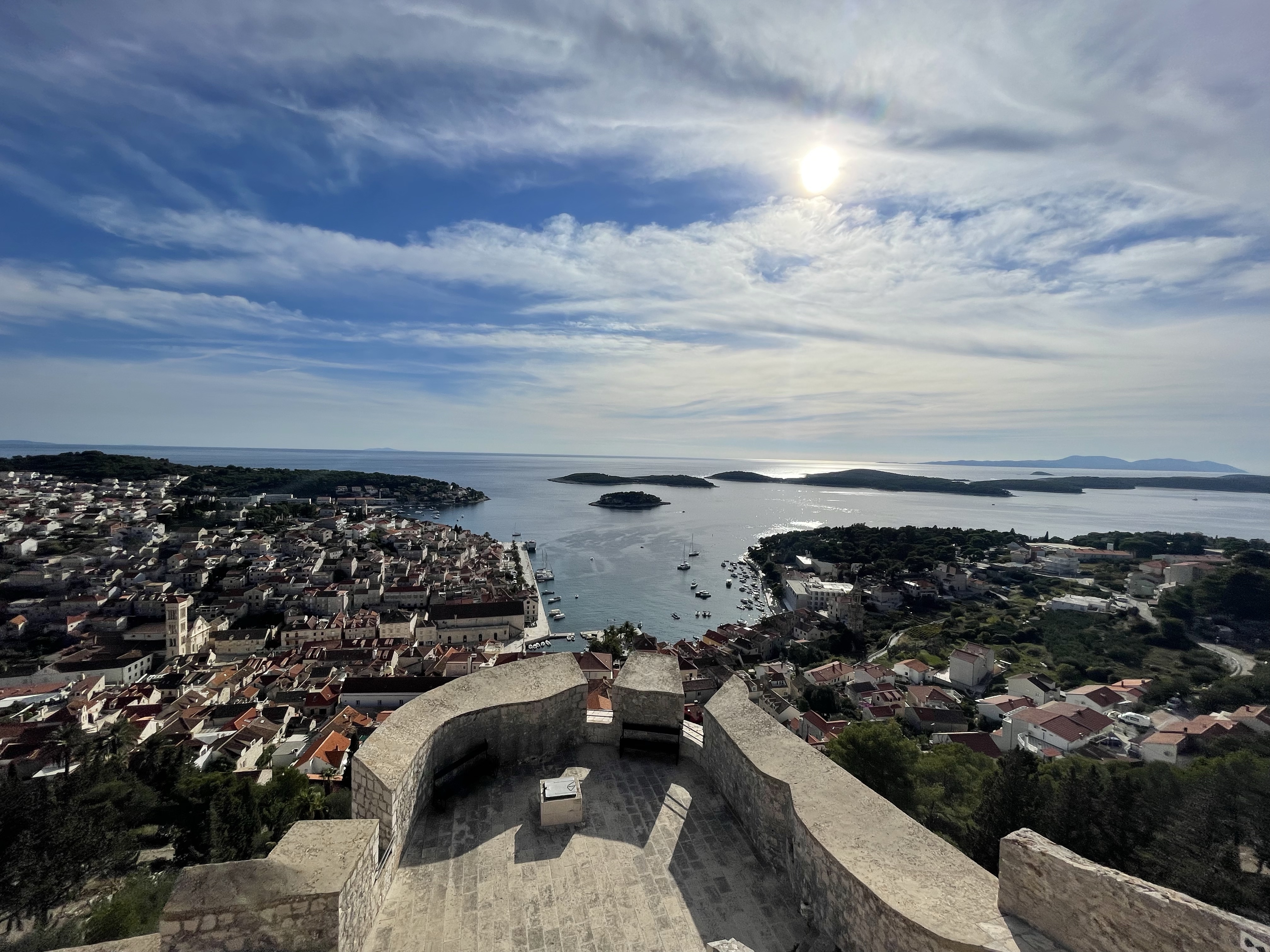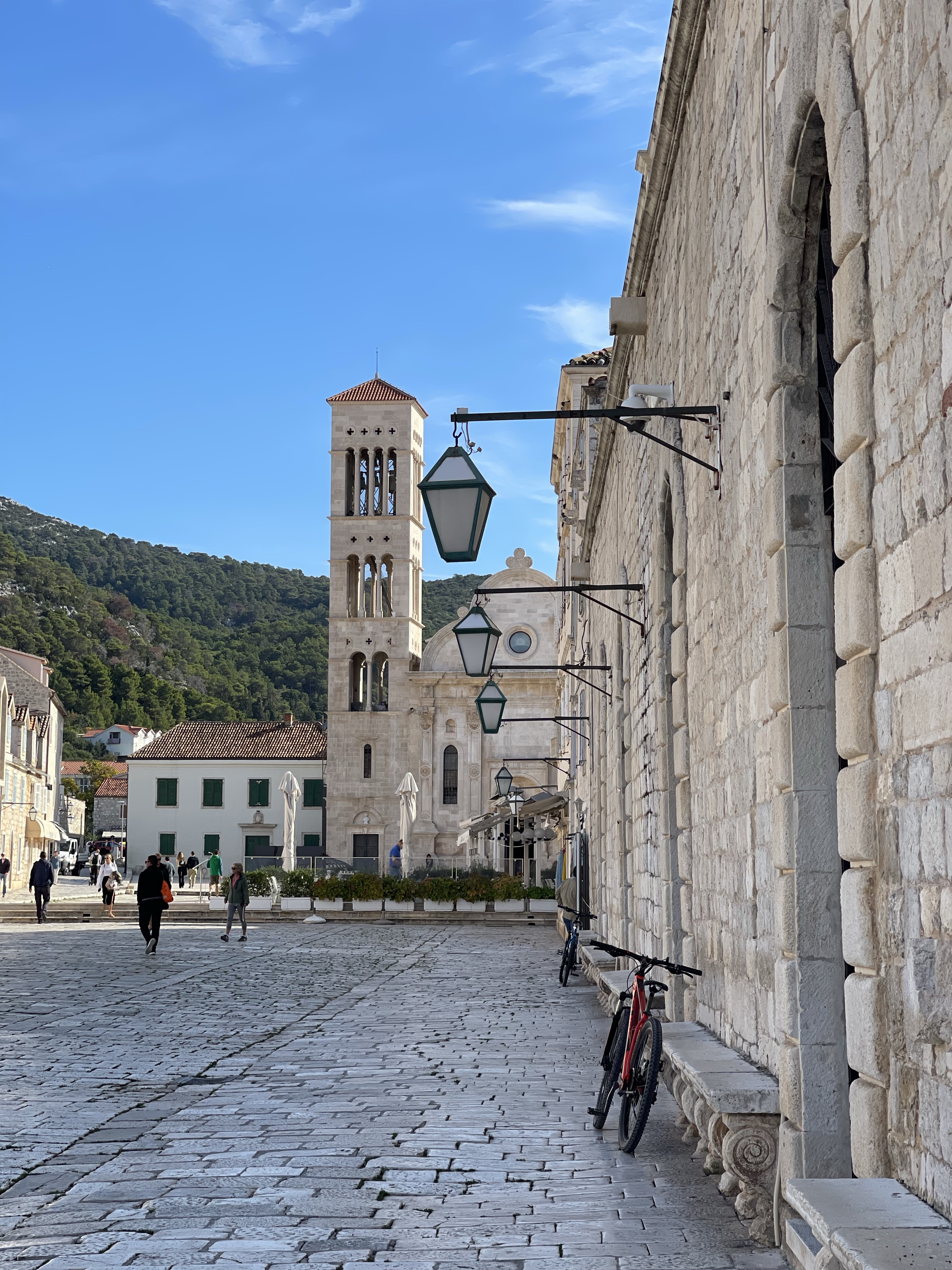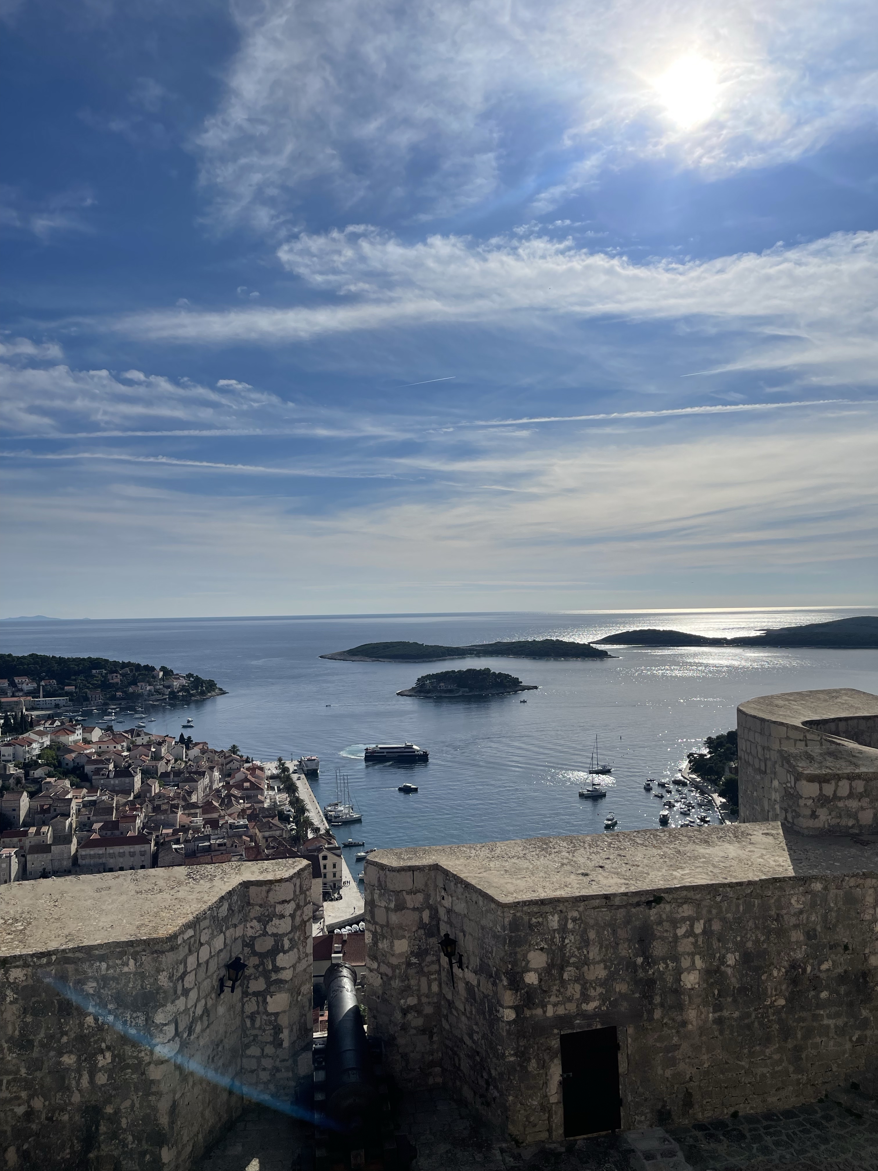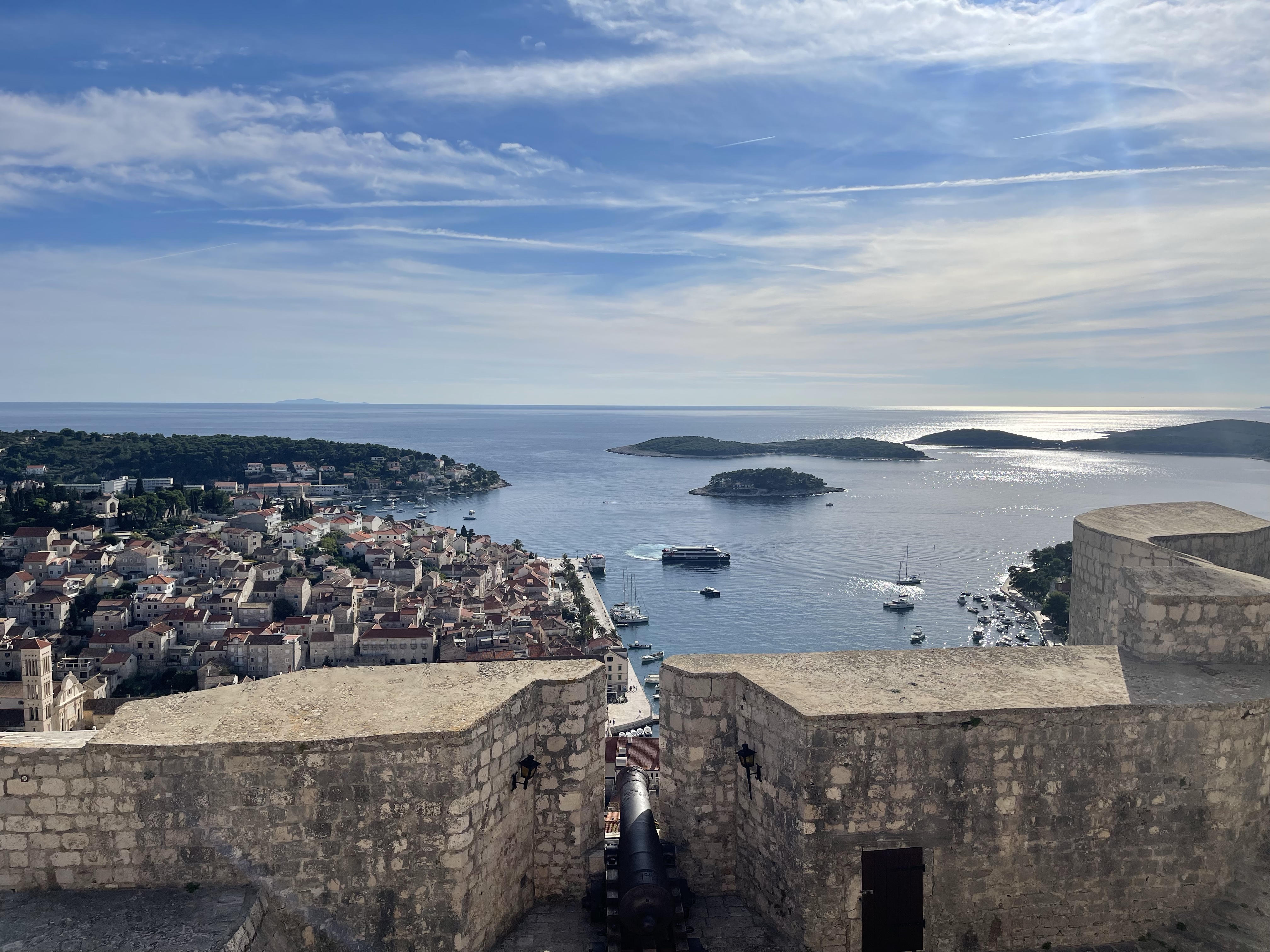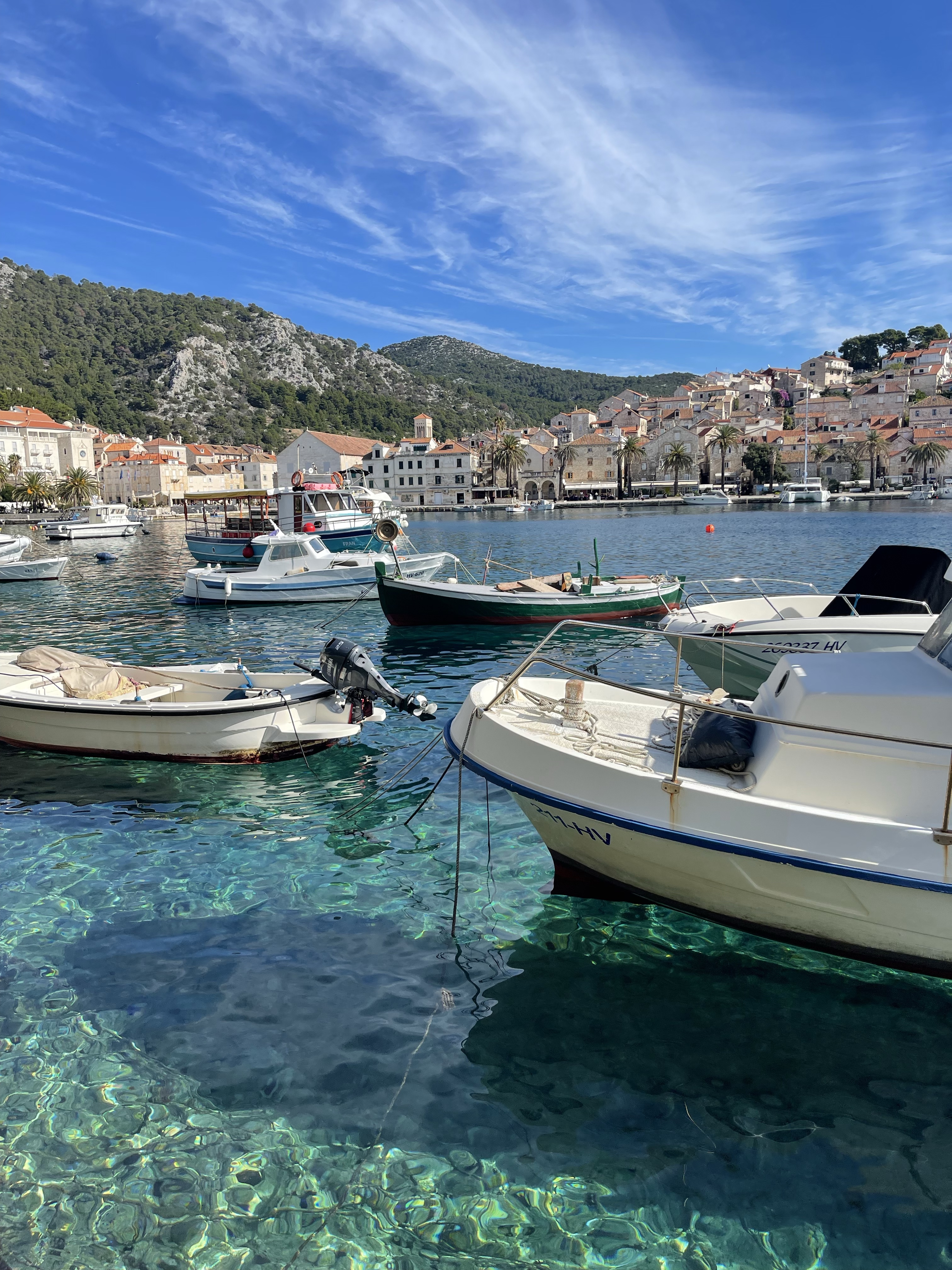 The following Sunday, I went to Hvar, Croatia, another place I had never been to. It was stunning and a must-see! I went during October, and the weather was perfect, but I know there can be rain during the fall. It is no longer swimming weather; some people were still okay with swimming. The temperature was a fair 68 and sunny. Hvar was one of the most beautiful places I have ever visited. It was a quiet and slower pace. While I was there, there was a significant American film production happening; it was like I was in Croatia but back home in Los Angeles. Hvar was slightly more experience than Split, but both cities are higher than average for eastern or central Europe, which is expected because it is typically flooded with American tourists.