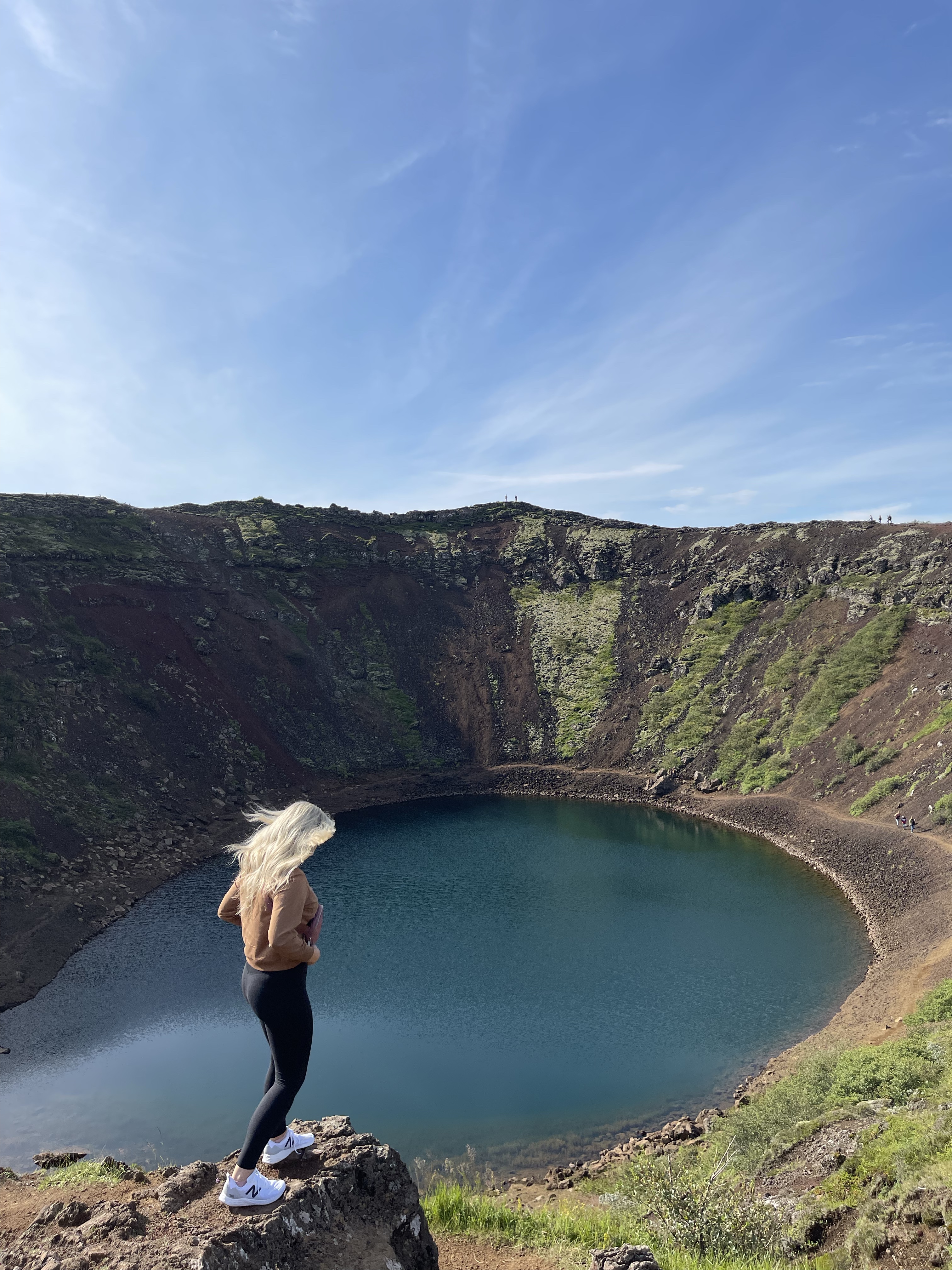 On your drive, consider a short detour Kerid Crater where you can walk around the rim of the volcano or down to the bottom to see the blue lake below; Nina and I loved this!
