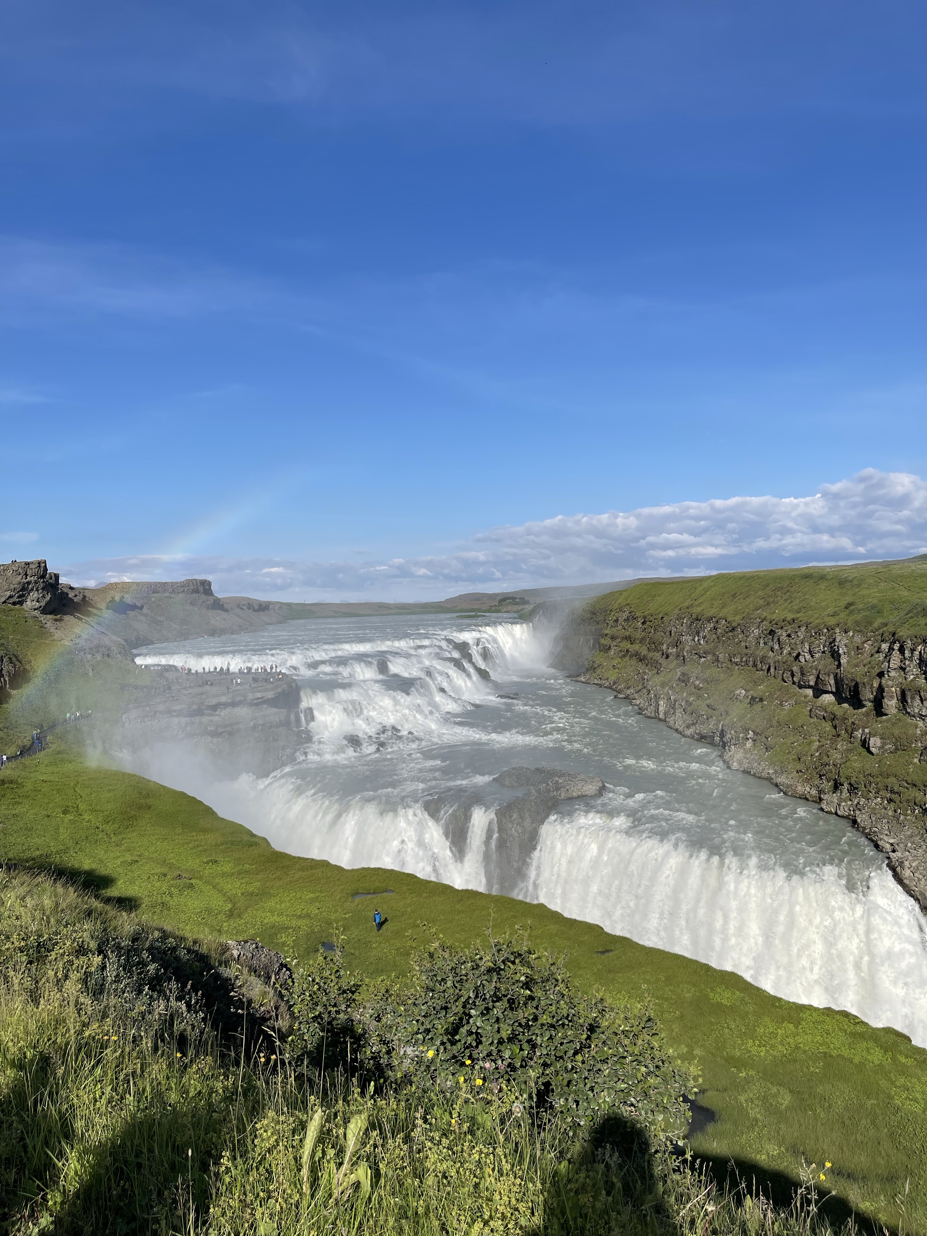 At Gullfoss (“Golden Falls”), you can walk along a few different paths to see the tremendous falls from different angles and perspectives. You’ll want to spend some time here admiring the incredible amount of water that flows over the edge every second.